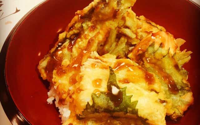 【日光紅鱒岩魚天丼】日光紅鱒(ヤシオマス)・岩魚・日光舞茸・日光生ゆばを天丼でご賞味ください。 ¥1,500(¥1,650税込)